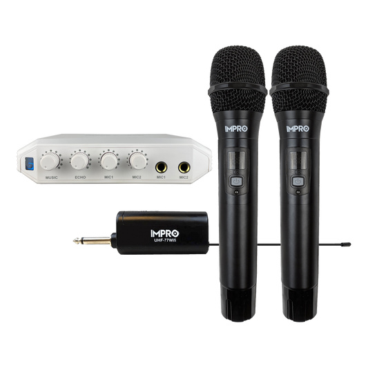 Karaoke Kickstart Dual Bundle: ImPro UHF Wireless Microphones & MX-R88i Compact Mixer
