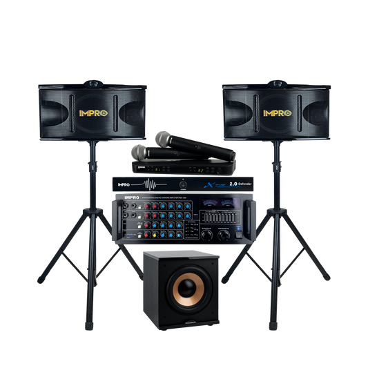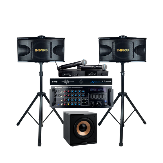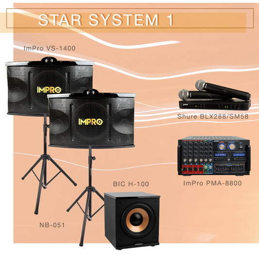 Star System 1 Karaoke Package with ImPro Speakers with Stands, Mixing Amplifier, and Shure Microphones