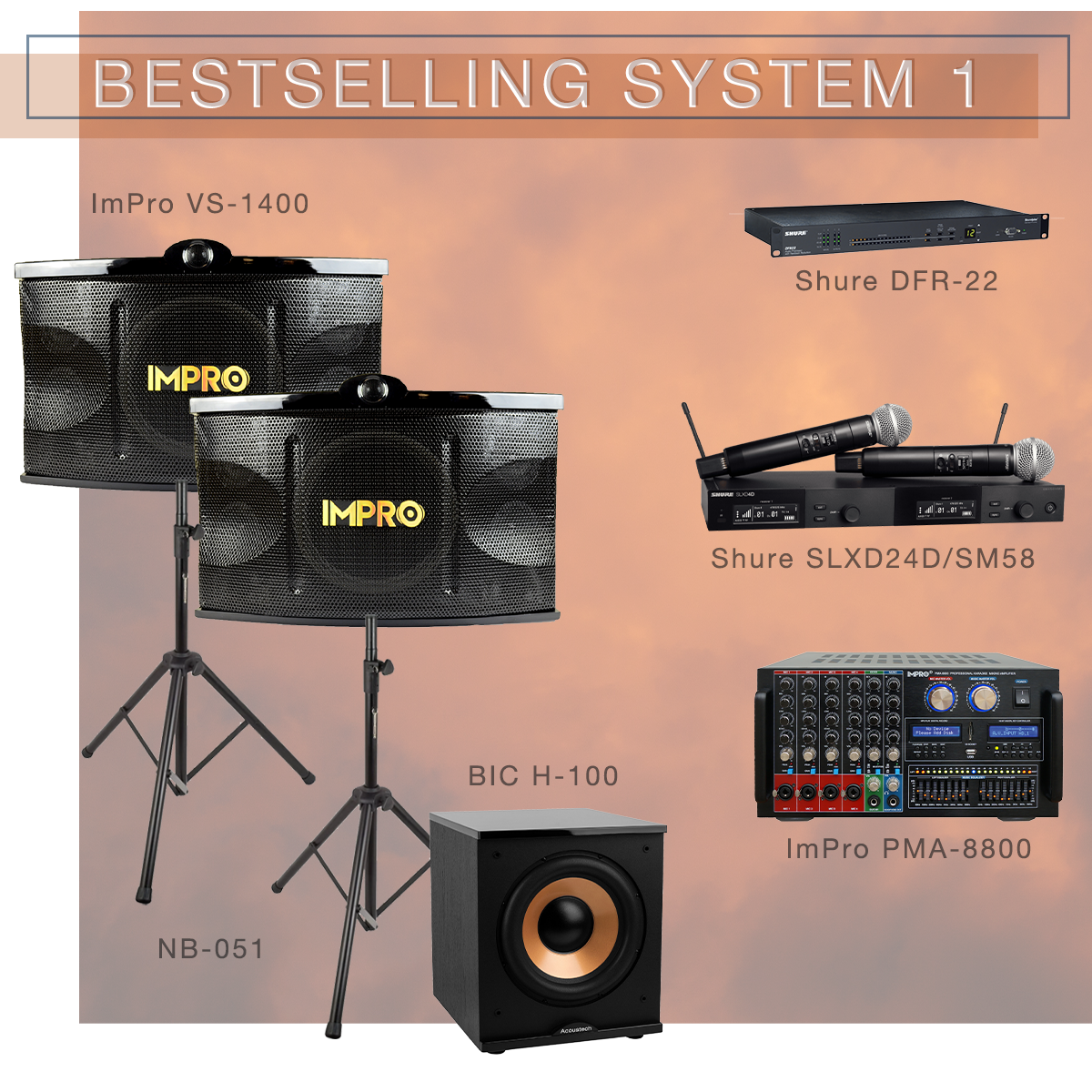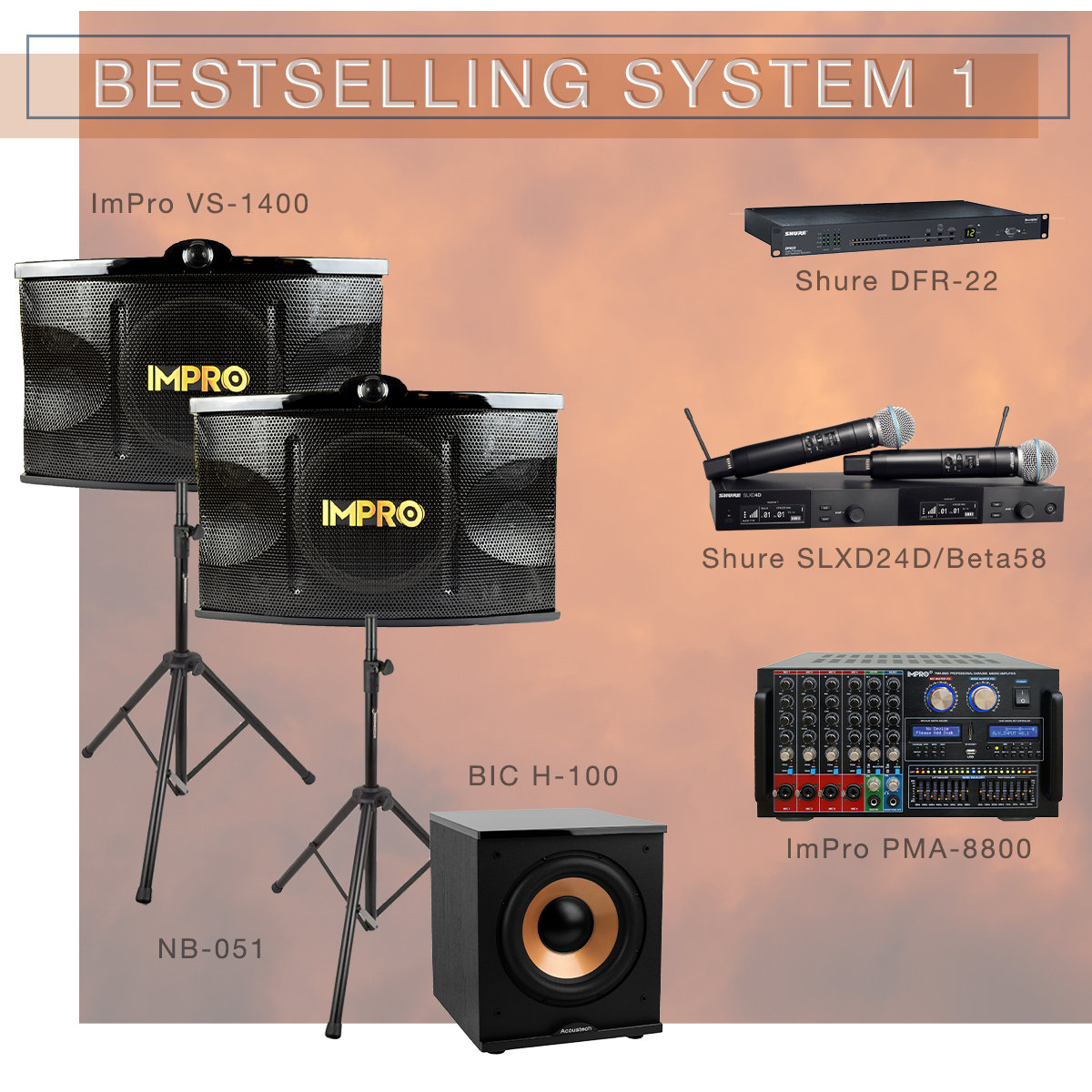 Best Selling System 1 Karaoke Package with ImPro Speakers with Stands, Mixing Amplifier and Shure Microphones