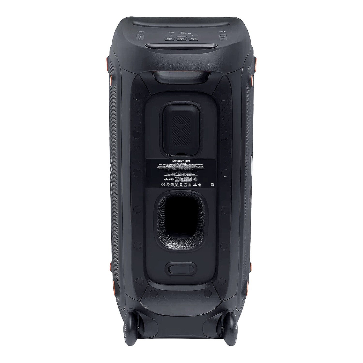 Huge sound, dazzling lights and unbelievable power set this speaker apart from the crowd. The JBL PartyBox 310 packs a full party into a transportable, splashproof sound machine like no other. Turn up your favorite playlists anywhere, from get-togethers at home to dance parties on the beach. Bring big party vibes with 240 watts of JBL Pro Sound and a synced light show that grooves to the beat. Plug in and keep the fun going all night or wheel over to the campfire and take advantage of its impressive 18-hour battery life. Start a party with the JBL PartyBox 310.
